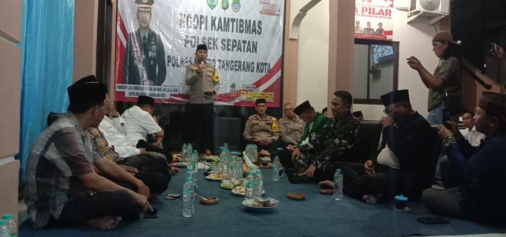 Tangerang (26/9) – Dalam rangka memperkuat sinergi antara aparat keamanan dan masyarakat, Polsek Sepatan menggelar acara Ngopi Kamtibmas pada kamis malam, (25/9). Kegiatan ini berlangsung di kantor kelurahan mekar jaya, kecamatan Sepatan, kabupaten Tangerang, Banten, mulai pukul 20.00 hingga 22.00 WIB.